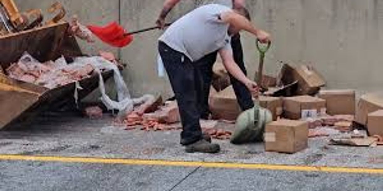 A tractor-trailer carrying 1,000 pounds of hot dogs overturned on Interstate 83, causing a traffic Jam (The Jam was Not on the Hot Dogs By the way, That's gross). The accident happened due to a mechanical failure and involved a collision with a passenger vehicle. Emergency responders worked for hours to clear the spill. Imagine going to the hospital and having to call your place of work because your car slipped on a hot dog. Luckily no one was injured past repair and it was just a POP OUT moment of cartoons in our life. But there was a good amount of work to KETCHUP on When the people involved in the crash got back.